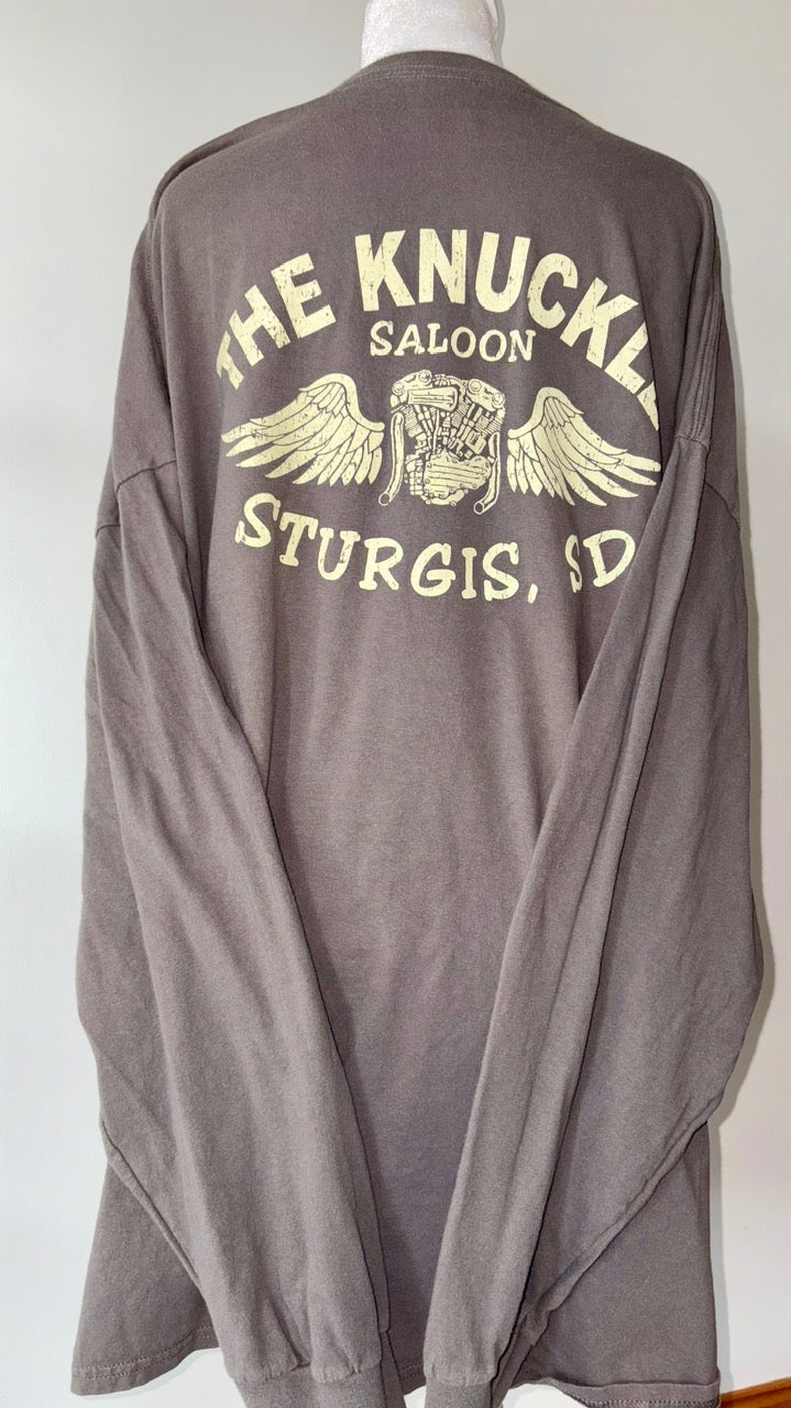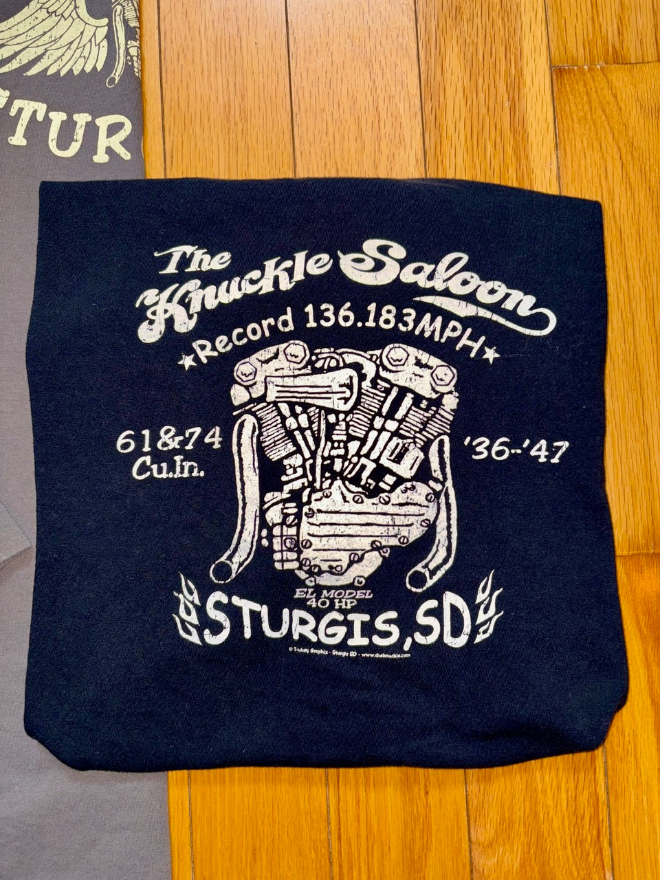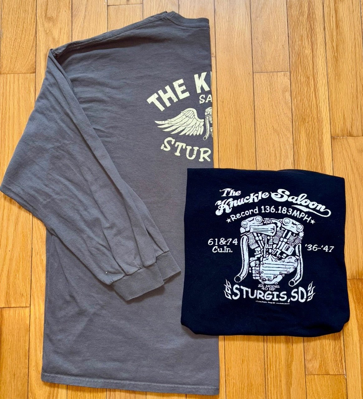 Available in multiple styles and colors, it’s the perfect way to rep The Knuckle Saloon while showing off your passion for classic bikes and Sturgis heritage.