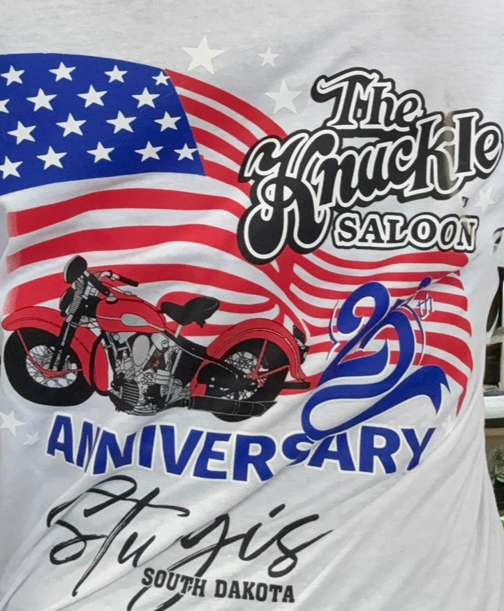 Celebrate a milestone in Knuckle Saloon history with our exclusive 25th Anniversary T-Shirt. Established in 2000, The Knuckle has been at the heart of Sturgis for 25 years—and this shirt honors the ride, the rallies, and the memories made along the way.
